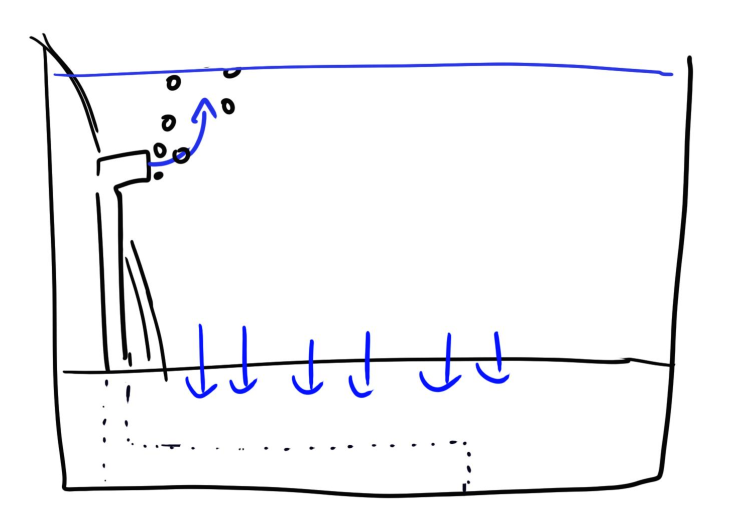 기본적으로는 기포기와 결합해서 사용한다. 물을 흐르게 하는 원동력은 공기방울이다.