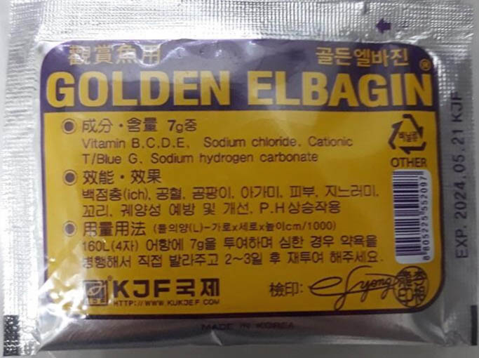이 약은 일본에서 솔방울병(에로모나스) 치료약으로 팔린다.