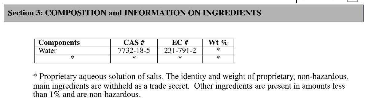역시 자세한 성분 및 농도는 대외비. 예전에는 어느 정도 성분을 공개했다고도 하는데?