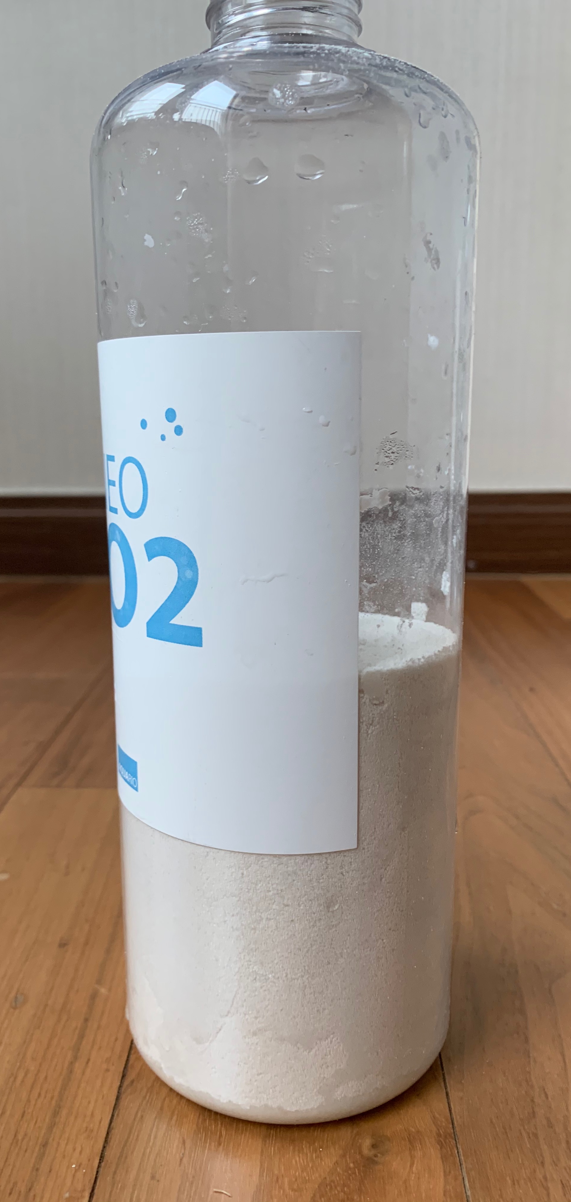 가루 500ml 투입시 전체 병의 절반에 살작 못 미친다