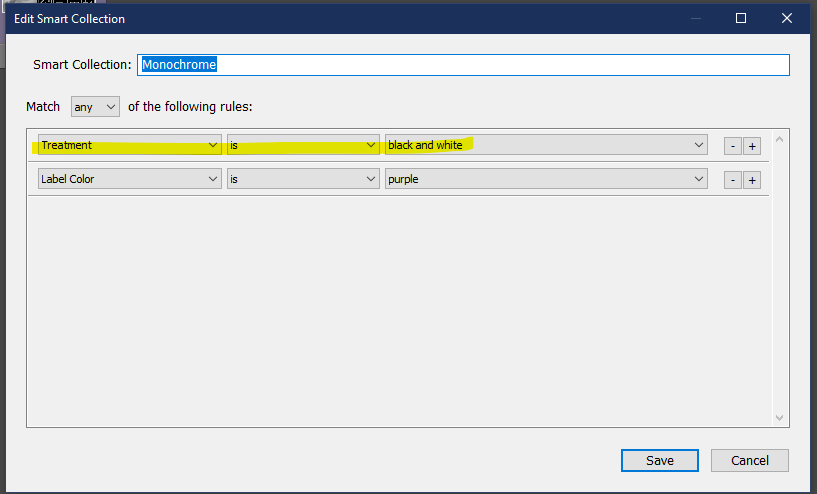 라이트룸 스마트 컬렉션 흑백 사진 구분