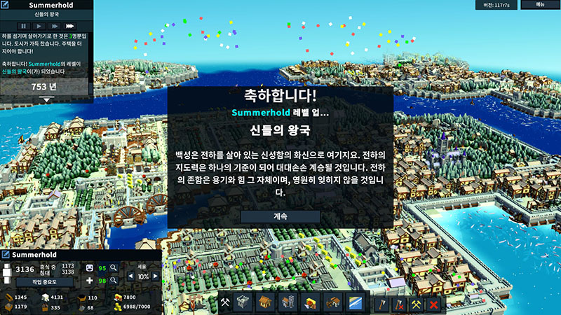 인구수 5000이면 마지막 도전과제 신들의 왕국이 해금된다.