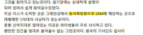 자작 소설들이기 때문에 실제 방위는 알 수 없지만, 하여튼 방향을 나타내는 말로 쓰인 용례를 긁어왔다.