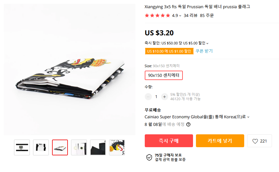 꼭 알리가 아니더라도 깃발들은 대부분 가격이 5달러 이하로 저렴에서 이베이나 아마존에서 구입해도 된다.