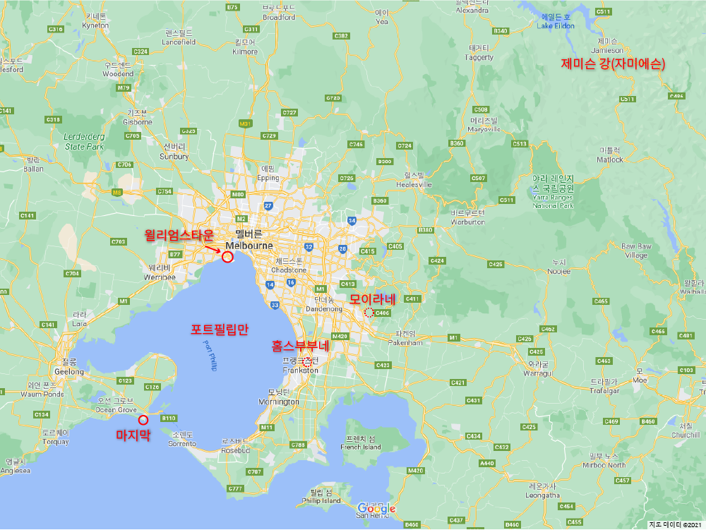 <해변에서>의 배경인 멜버른 주변 지역