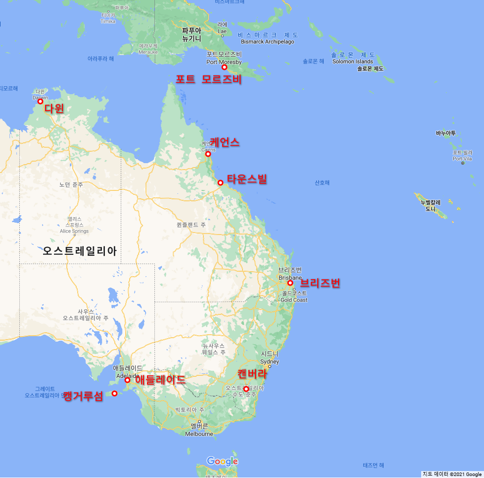 <해변에서>에서 언급되는 호주의 주요 도시들