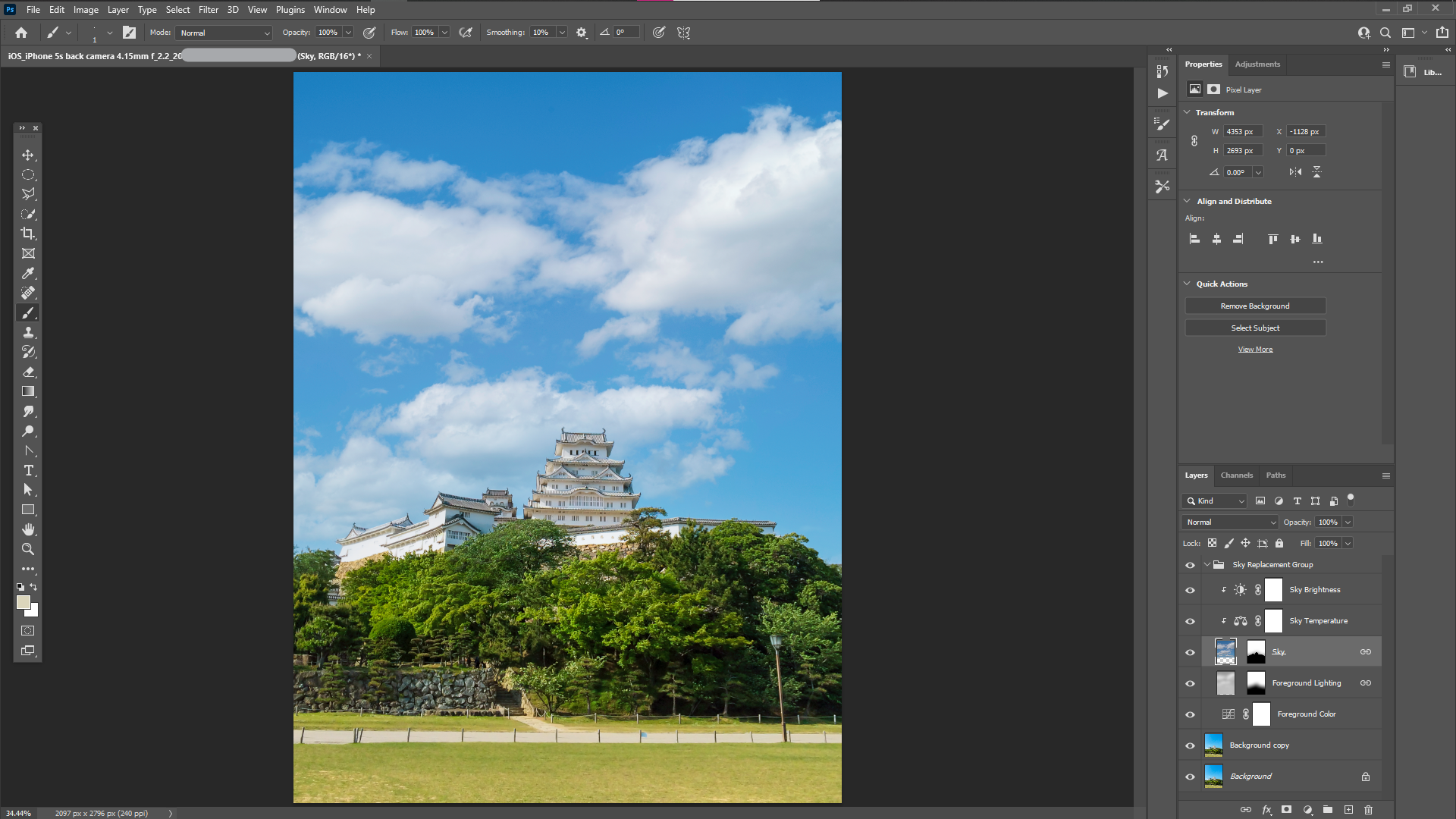 Digital Arts/Photos 카테고리 포토샵 하늘 보정 팁 - 하늘 대체 (Sky Replacement) 2021. 9. 18. 포토샵 편집(Edit) 메뉴의 하늘대체(Sky Replacement)를 선택하면 가능하다. 포토샵이 하늘 부분을 인식해서 대체해준다. 대체할 하늘 사진 목록에 자기가 찍은 하늘 사진을 추가할 수도 있다. 하늘을 바꿔 구름을 추가한 모습 (좌) 대체 전 / (우) 대체 후 공유하기 게시글 관리 Scud Missile (2000~2025) 'Digital Arts/Photos' 카테고리 보기 라이트룸에서 가정용 프린터로 사진 인쇄하기 서울의 필름 사진 현상소 라이트룸에서 흐린 날씨 구름낀 하늘 파랗게 보정하기 수동 카메라 셔터 스피드 팁
