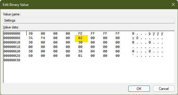 Computer\HKEY_CURRENT_USER\SOFTWARE\Microsoft\Windows\CurrentVersion\Explorer\StuckRects3