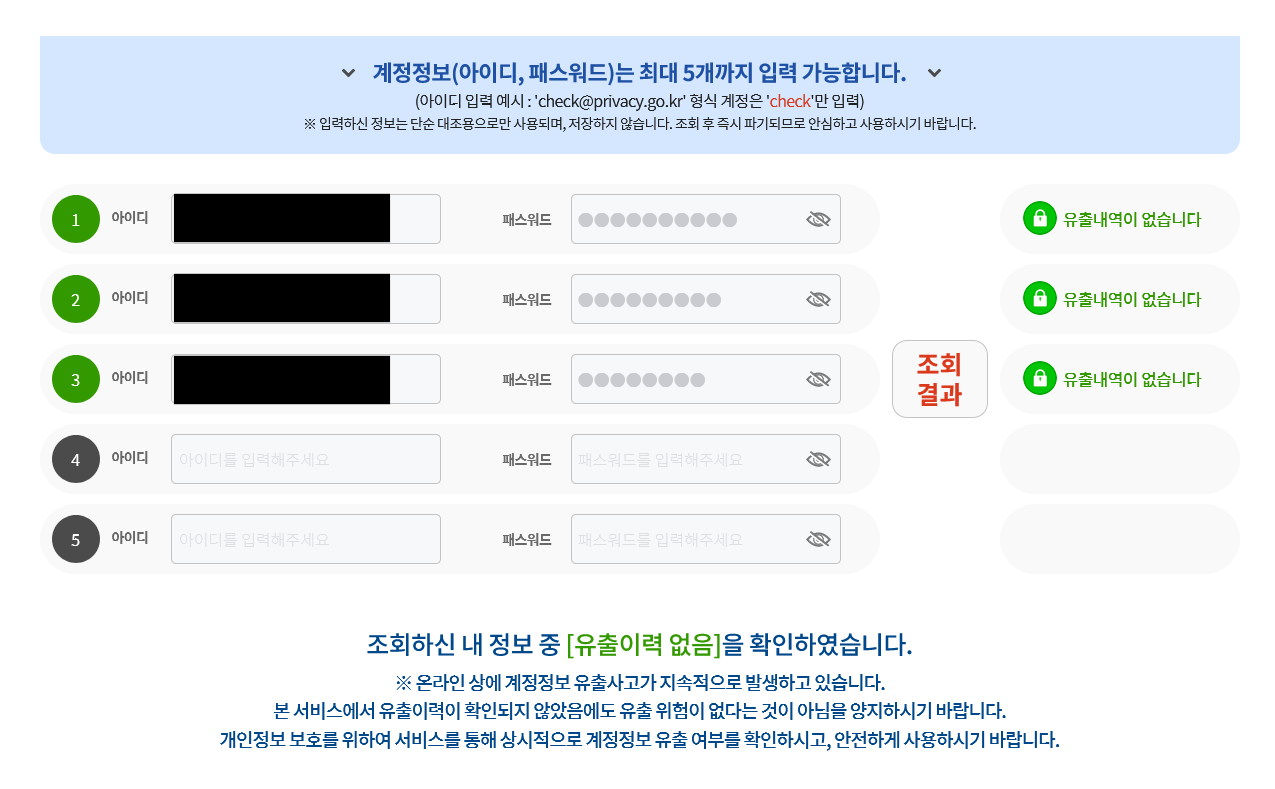 털린 내 정보 찾기 서비스 주소는 : https://kidc.eprivacy.go.kr/