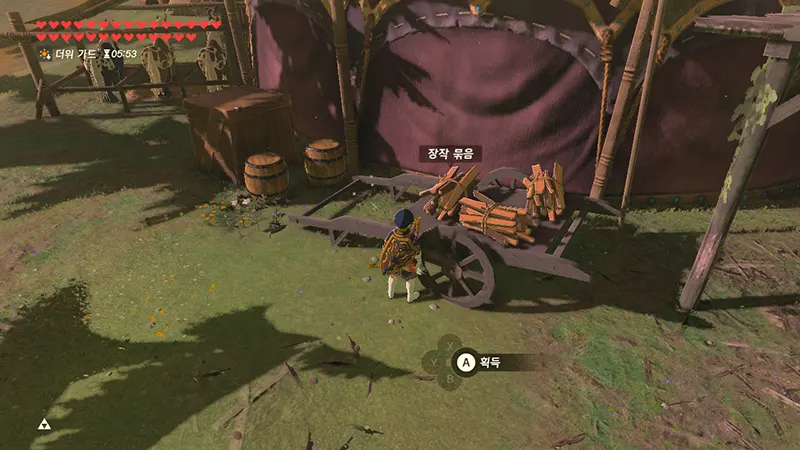 이렇게 통나무가 쌓여 있는 곳은 리토의 마구간과 하이랄성 서북쪽 해자 건너편 히녹스가 자는 곳 두 군데 밖에 없다.
