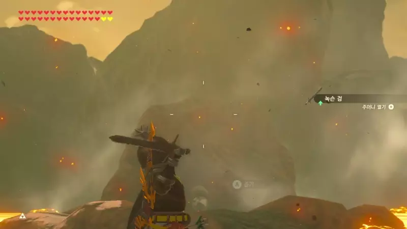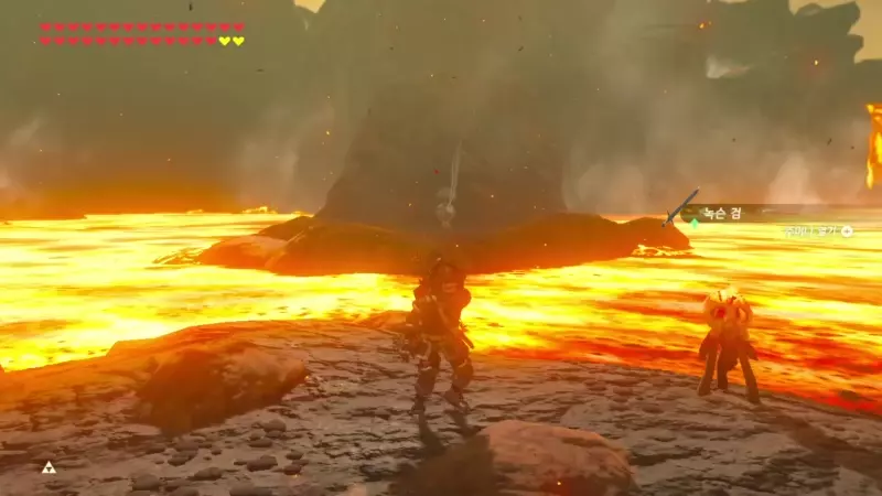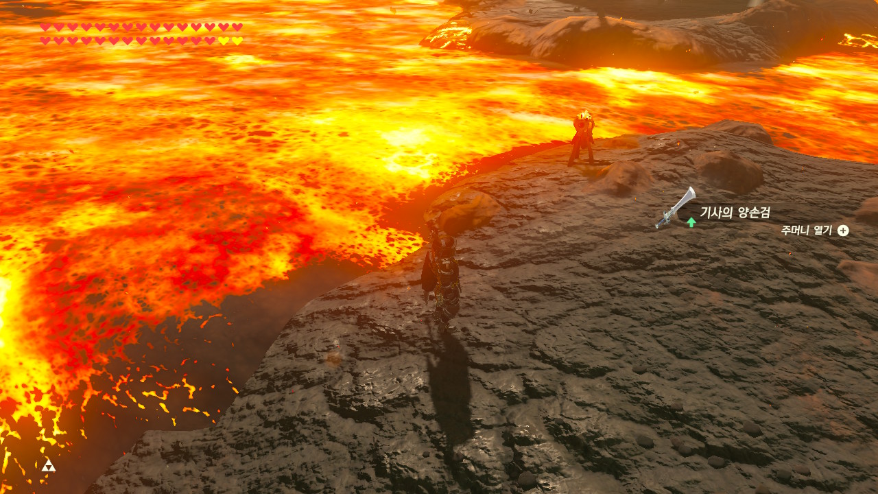 이 빅고호 섬 앞에 가면 녹슨 무기가 다섯 개 꽂혀 있고 록 옥타가 용암 건너편에서 기다리고 있다.