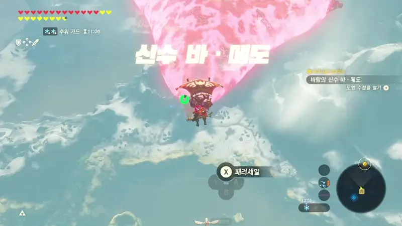 링크를 모시고 바 메도를 처치하러 하늘 위로 올라간다.