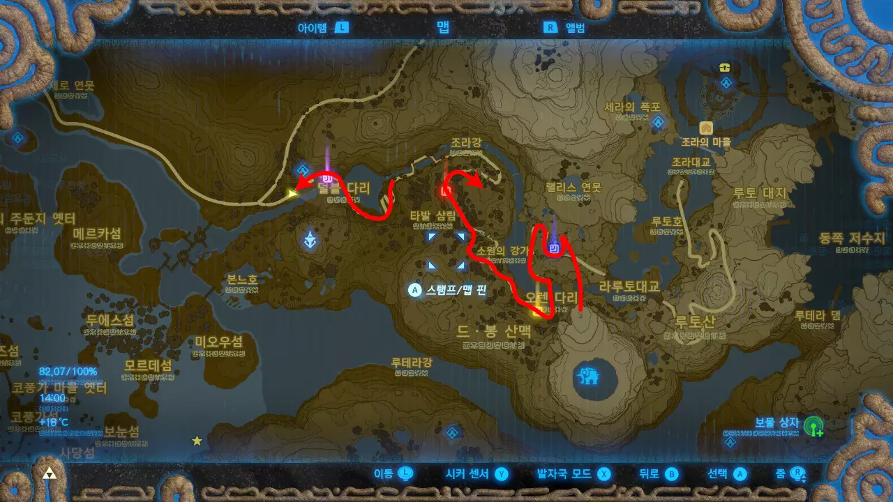 바 루타를 아직 안 깼다면 시커 타워로 순간이동 하든지 해서 덜블다리부터 반대 방향으로 올라가면 되겠다.