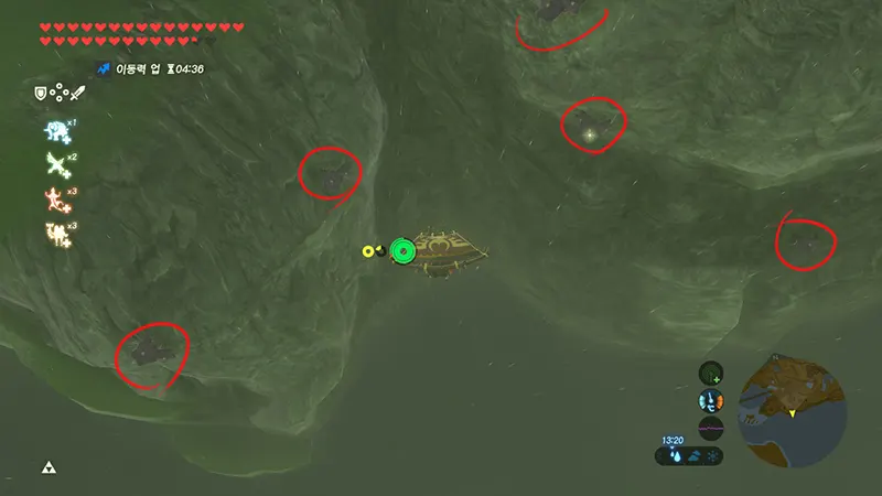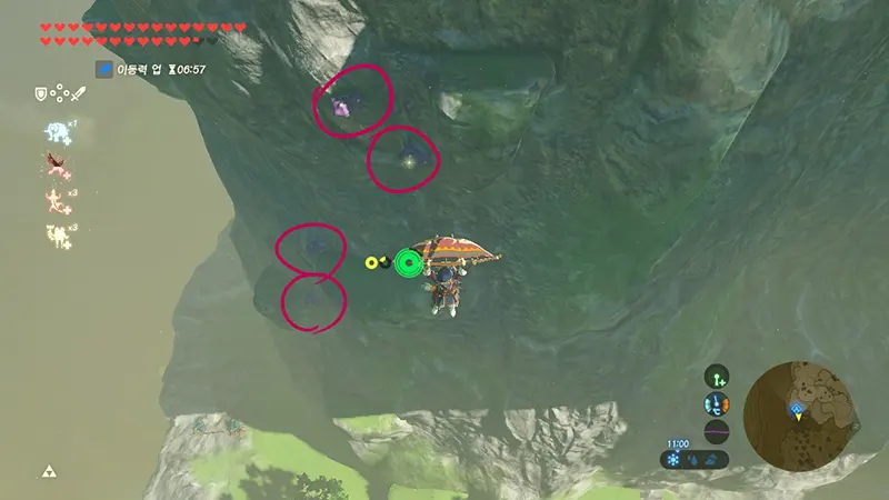 몬스터도 처리하면서 절벽을 타야 하지만 면적대비 많은 양이 모여 있다. 30개 이상 있으니 무쥬라의 가면을 쓰고 센서를 사용해서 찾아다니면 된다.