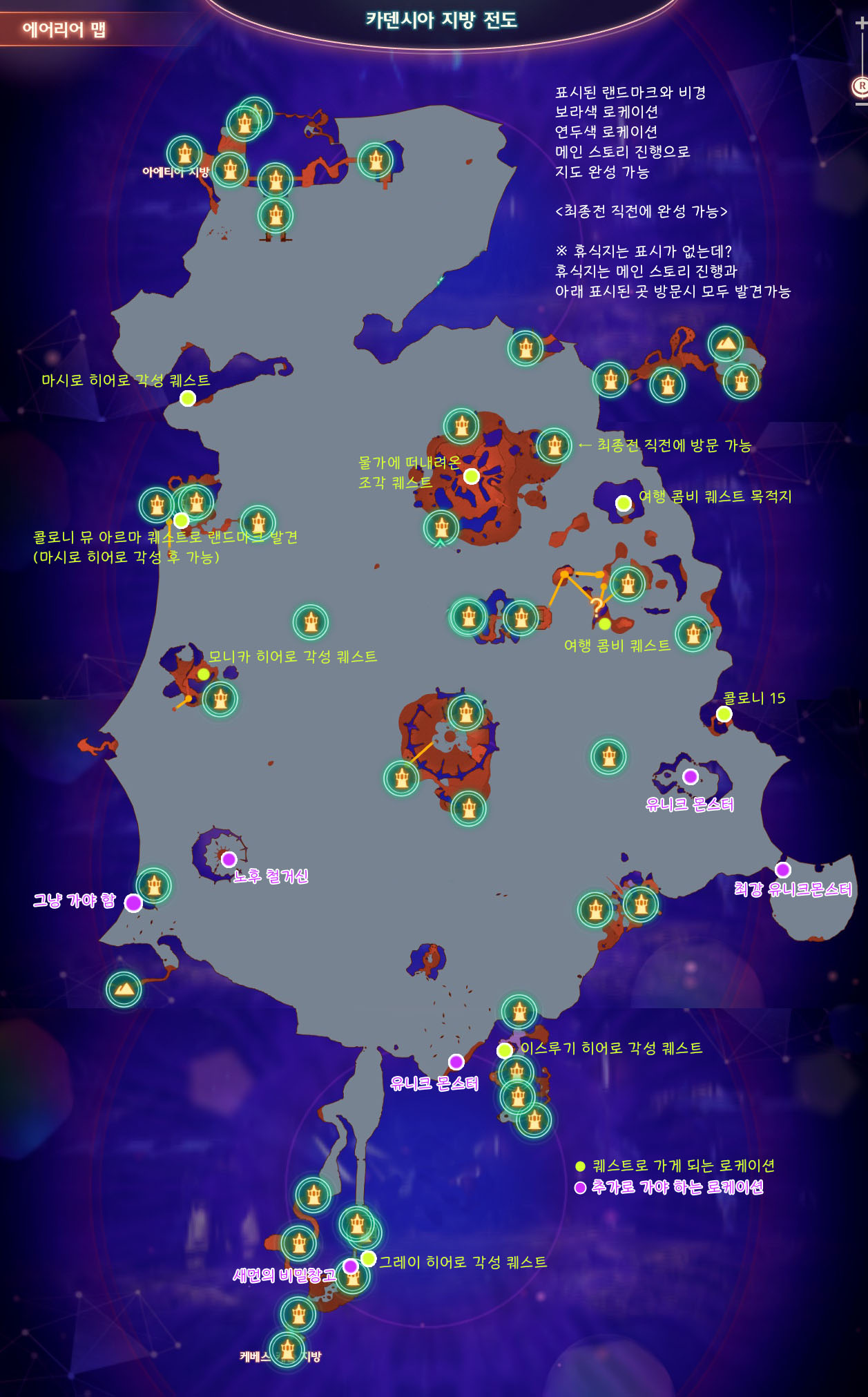 Games/Xenoblade 카테고리 제노블레이드3 공략 : 지도 완성하기 카덴시아 지방 로케이션 2022. 8. 20. 일단은, 제일 힘든 카덴시아 지방부터 카덴시아 지방 : 메인 스토리 5~6화 스토리 배경 <스포주의> 새먼의 비밀창고는 메인 스토리 진행하여 3번 도크라는 지역이 열려야 갈 수 있다. 공유하기 게시글 관리 Scud Missile (2000~2025) 'Games/Xenoblade' 카테고리 보기 제노블레이드3 공략 고골 아이템 / 고골 구아바? 제노블레이드3 전작들의 장소 제노블레이드3 지도 공략 비경 여왕의 거처 제노블레이드3 퀘스트 공략 노아 일행의 교육 이론편