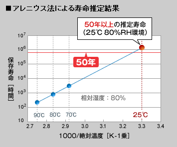 광미디어가 90도에서 n시간을 버티고, 80도에서 m시간을, 70도에서 l시간을 버텼다면 상온인 30도, 25도, 15도에서는 훨씬 긴 시간을 버틸 수 있다는 것을 계산할 수 있다. 실제로 실험해서 계산해보면 광미디어가 상온에서 버티는 시간은 수십년~수백년에 이른다는 것이다. 습도도 마찬가지로 고려한다.