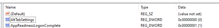 에서 AltTabSettings 값이 1인지 0인지 확인한다.