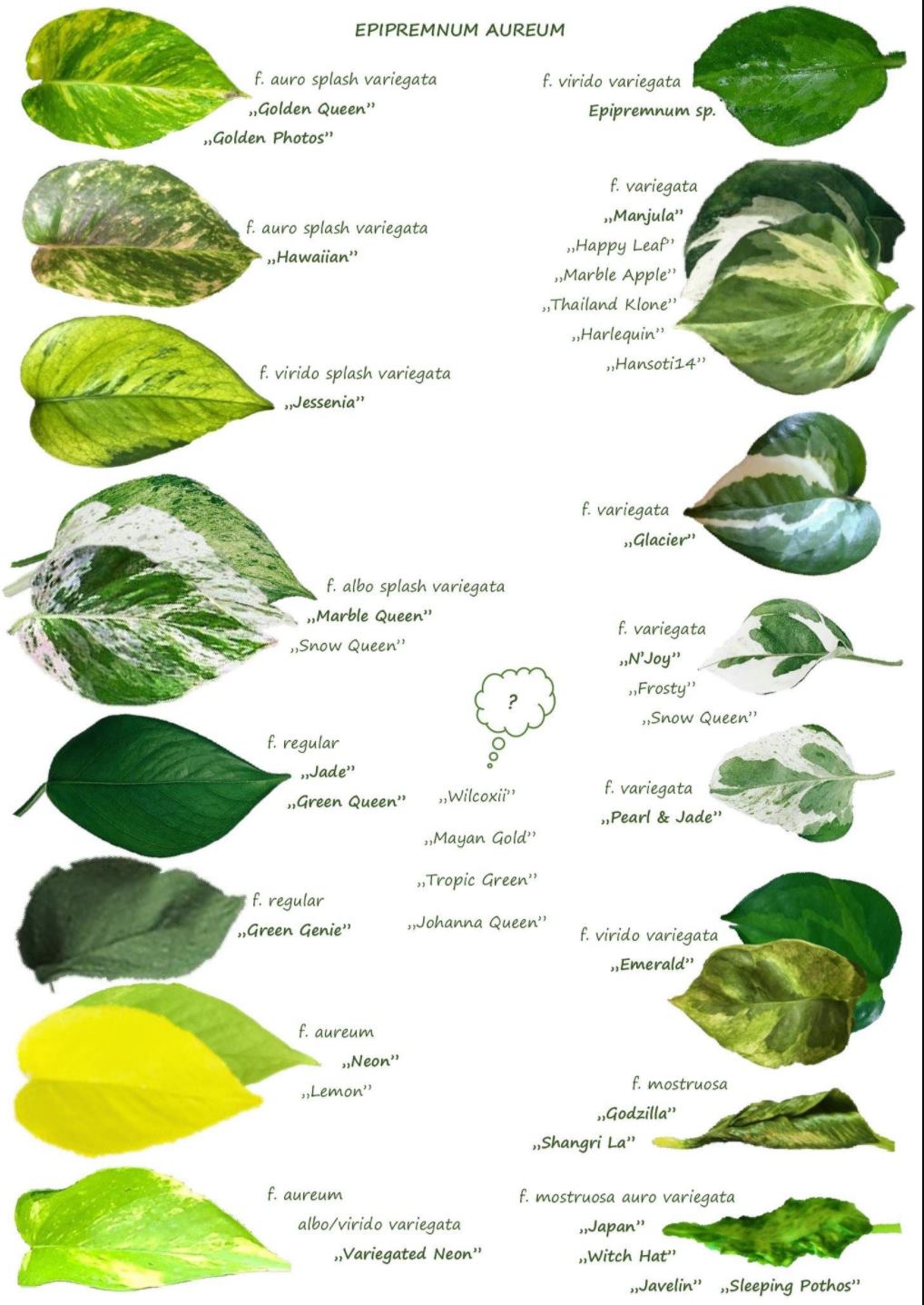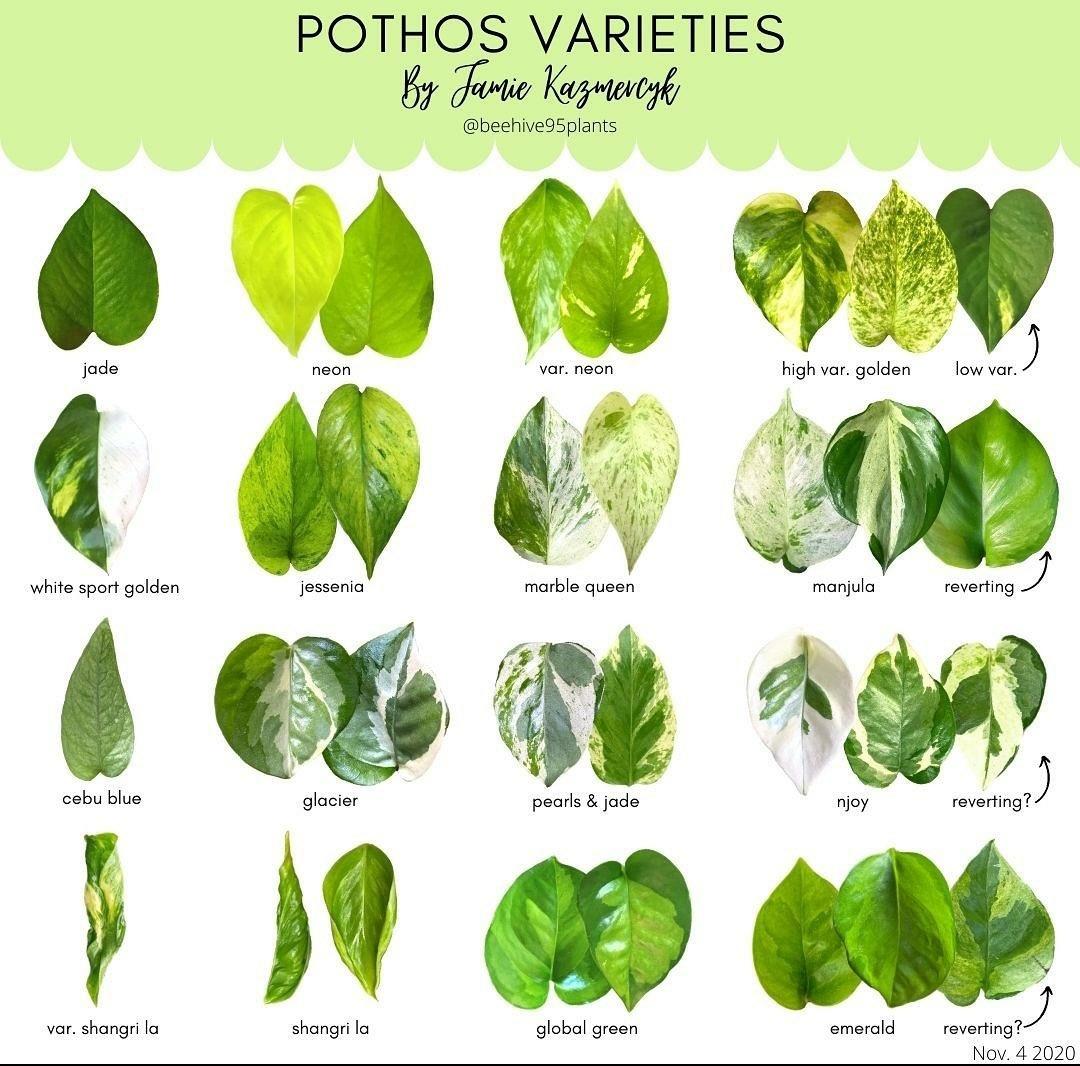 대한민국에서는 jade (민무늬 스킨답서스), golden (기본 무늬 있는 스킨답서스), neon (형광 스킨답서스), marble queen (마블퀸 스킨답서스), manjula (오레우스 스킨답서스) 정도가 인기 있는 것 같다.
