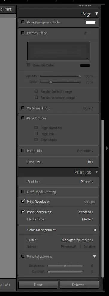 - Print Sharpening: 출력 시 샤프닝을 적용할지 설정한다. 개인적으로는 Develop에서 샤프닝을 줬어도 여기서 다시 넣는게 괜찮았다.