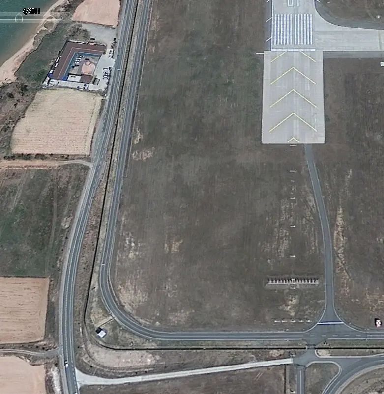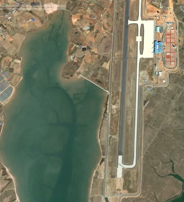구글 어스 프로로 볼 수 있는 과거 위성사진이다. 2004년 3월, 무안국제공항이 한창 공사중일 때의 위성사진이다.