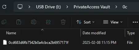 AES128로 보안된다고 한다. AES-128 암호화는 강력한 보안 방식이다. 암호화된 파일은 Windows 탐색기에서 직접 열 수 없으며, 오직 PrivateAccess 프로그램을 통해서만 접근이 가능하다.