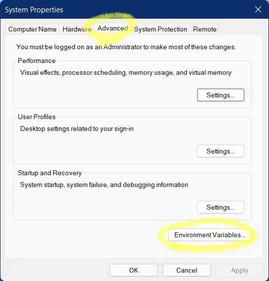 이 환경 변수는 명령 프롬프트에서 직접 변경할 수도 있지만 GUI를 이용해서 변경하는 것이 더 간단하다.