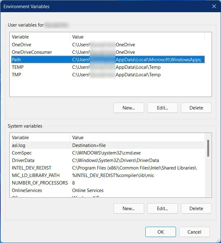 명령 프롬프트(cmd)에서 path라고 하면 환경변수를 보여준다.